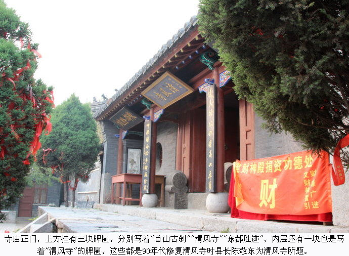 据寺碑清乾隆四十四年碑记“建自前明隆庆辛未”(隆庆五年,1571年)。又经清代多次重修,所以,清风寺始建于明代,正殿仍是原构架。