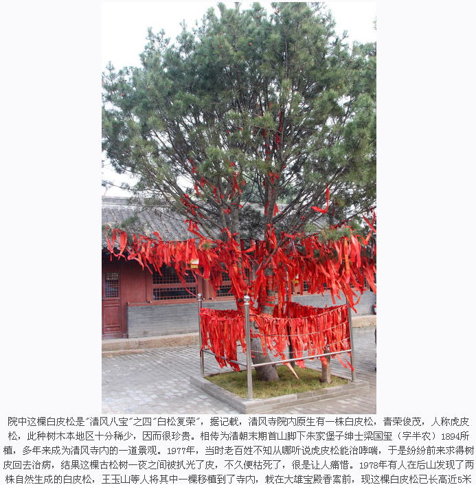 清风寺除了殿堂建筑外,还有许多风景点,很有特色。寺内有一株古柏“白皮松”,据说有近百年历史了。寺东有数个巨石耸立,形如人体,称“将军石”,首山顶峰有砖石砌筑古台“崇嶽台”,俗称“首山斗”,坡石有手印,传说是唐将薛礼在辽东征讨高丽时遗迹,有“鞍山下了马,手山按一把,亮甲山亮盔甲”之佳话。历代游首山清风寺之人曾留下许多诗句,清代辽东才子王尔烈为清风寺题额“昙花香远”,楹联“遵大路以遥瞻高山卓尔,叩禅关而徐步御风冷然”,就是对这一古刹景观的描绘。十年浩劫,清风寺所有塑像、匾额等被砸一空,幸存下来的建筑,现已成为辽阳地区时代较早寺庙,省市政府拨专款进行了维修,1989年被列为省级文物保护单位。