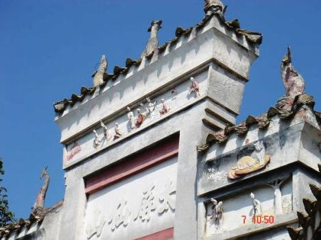 屏山寺还另有一奇:有两座一模一样的山门。向南正对湖南的一座,俗呼“老山门”。左侧有墙凹进数米,开门东向江西,当地人有口谚叫“入我门来”。两地香客各进各门,互不相扰。其门规格及墙垛造型、装饰、对联及门神画像,都惊人地相似。这在全国寺院建筑中,可能没有第二例。光凭这一点,就值得人们来领略一番其中和谐共处、齐盼康宁的历史心态折光。