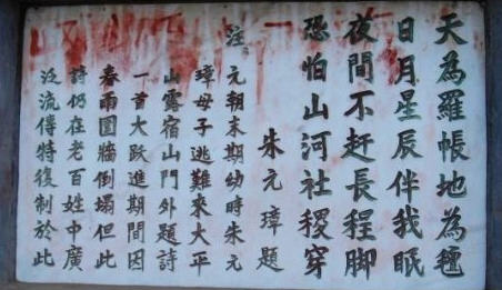 清志载傅泷撰记,“大屏”写作“太平”,曲折地反映了当地民众渴盼和平康宁的愿望。上世纪八十年代重修此寺时,基建施工意外挖出两方幸存的古碑。其一即傅泷撰记的清朝碑志,其二据说竟是唐初宰相房玄龄题写的《吴楚古刹碑》,其中题诗如下: