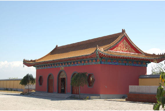 从新民城区沈阳出发,走沈通高速公路,新民口出来,前行稍许,右前方便呈显出一片琉璃瓦熠熠发光,满目金碧辉煌的建筑群,沈阳三农博览园重要的文化旅游景观,“四寺”之一的“三圣寺”随之展现在眼前。
