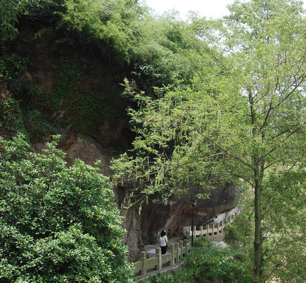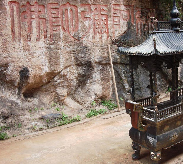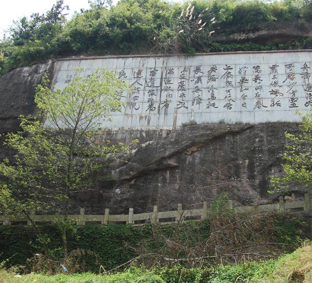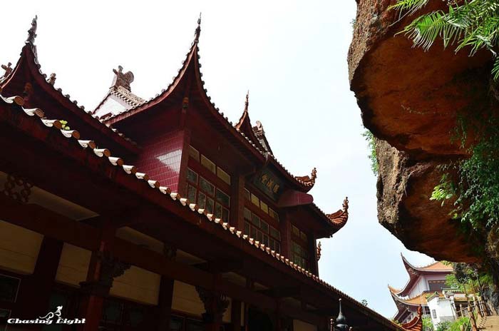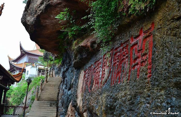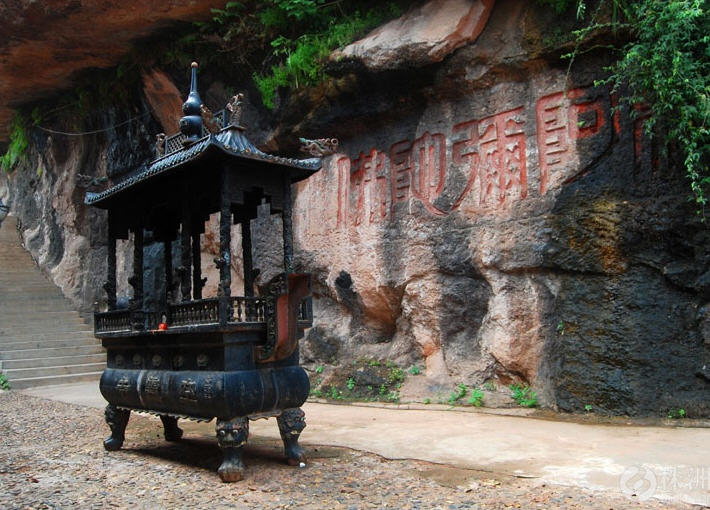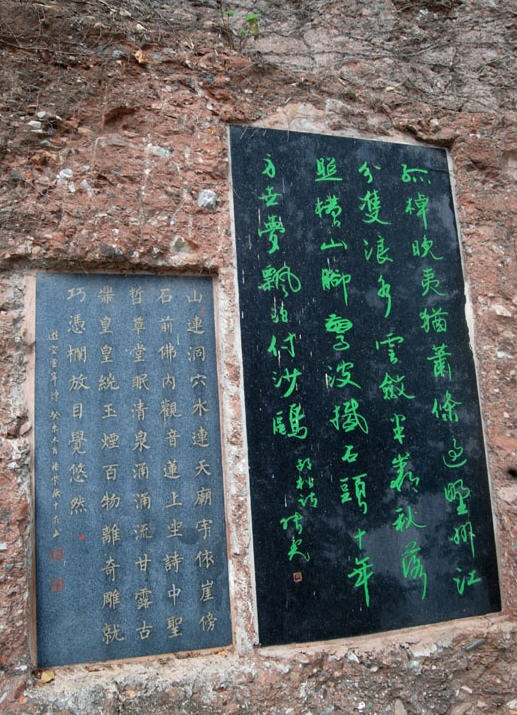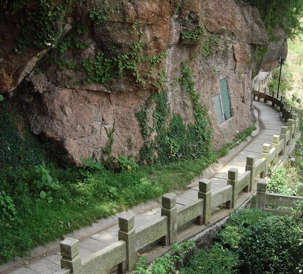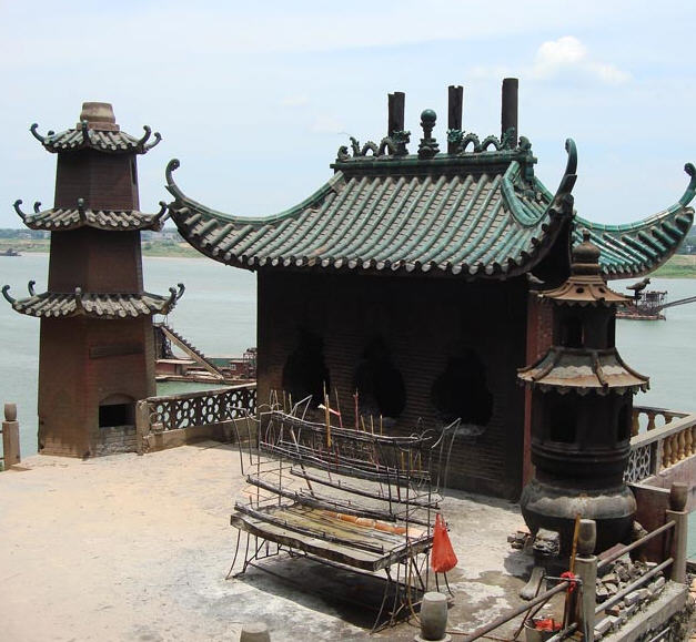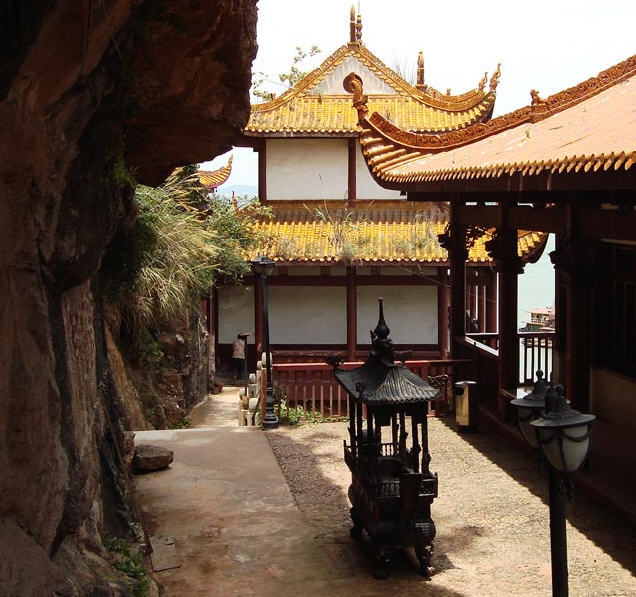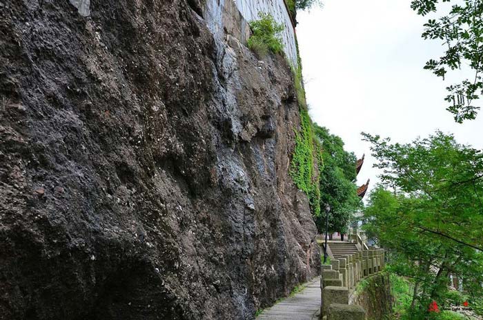 名闻遐迩的杜公亭建于临江岩下,位梅花阁上侧,是从江上入寺石路之必经处。杜公亭由四根二尺见方的木柱支架,亭呈方形。亭正中壁上神龛置杜公像,高一尺多,像后有大理石刻“诗圣”二字,亭中四柱均有对联,其中有翰林大学士赵启霖题“潇湘行迈,霞石留题。”