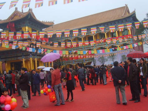 藏于雪峰山最亮丽的风景区之一的无量禅寺新址,迎来了开寺的近万名首批游客和信众。修葺一新的无量禅寺,彩旗飘扬,人山人海,人潮沸腾,非常热闹。喜悦惊天的花炮声响彻云宵,法乐回荡四荡,经声佛号,悠扬悦耳,清净庄严。重建后的千年古刹举行了盛大的落成典礼暨圣像开光法会,于上午十时十八分,敲响洪亮的钟声,宣布开光法会开始
