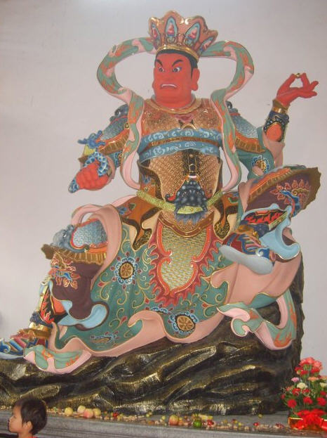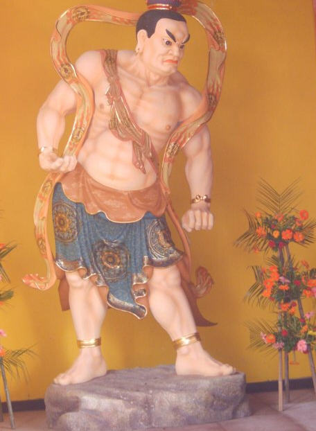 走进朱红漆大门,只见山门殿内左右:哼哈二将(护法神)镇守寺庙。