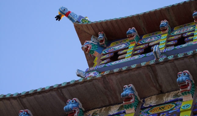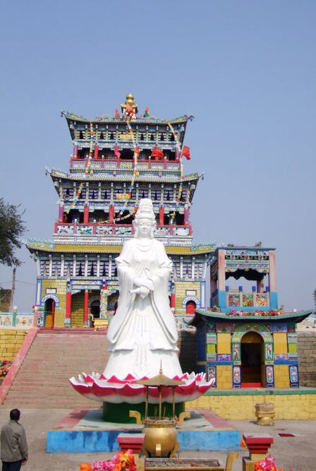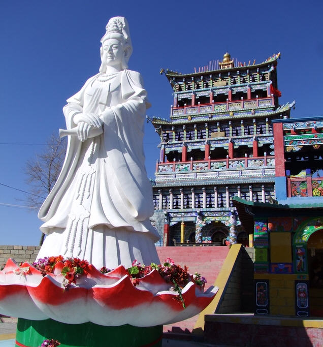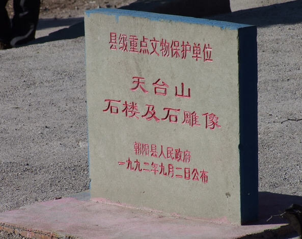 朝阳县羊山乡大四家子西南不远处有一座山。依山而建有座寺院叫天台寺。该寺始建于民国初期(1919--1929),文革期间,被毁为一片废墟。1991年,在国慧法师和胡歧山等居士们的号召以及十方大德的资助下,又开始重建,仅全石楼一项的费用就将近270万元左右。石楼是一座从上到下全部用石头组建的三层建筑。当中没用到一块木料。可称是建筑中的一绝。也充分反映了劳动人民的聪明和智慧。楼内第一层是地藏殿,第二层是凌宵殿,第三层为瑶池宫。