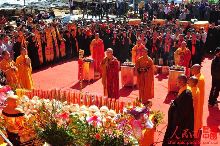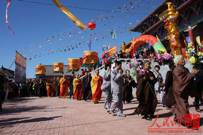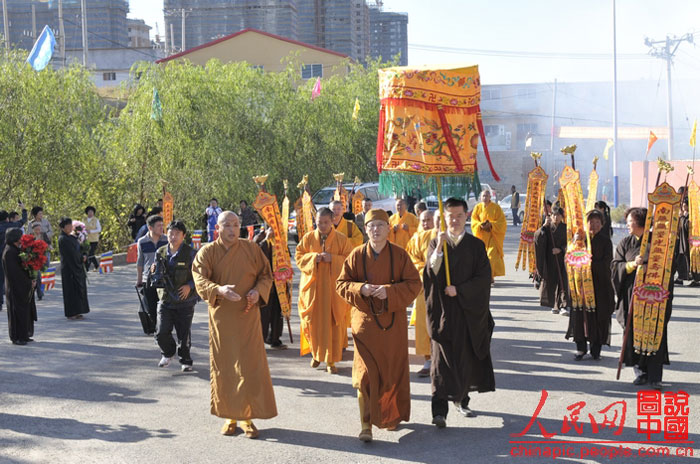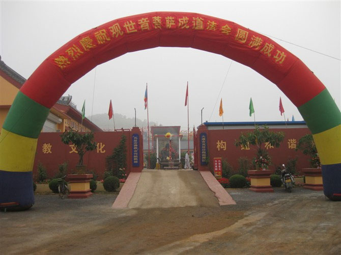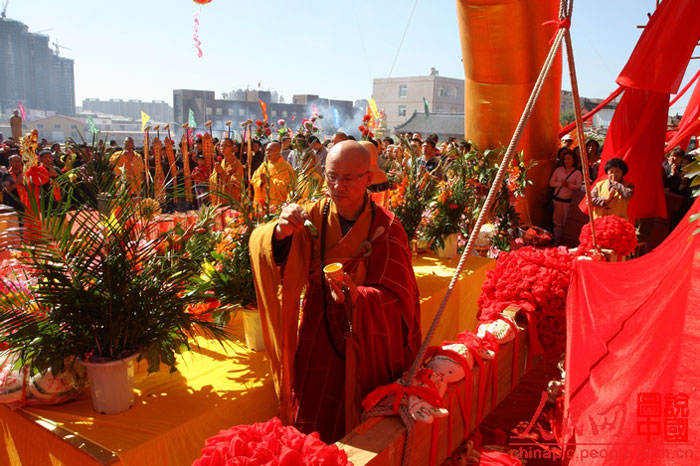 辽宁瓦房店抱龙禅院举行天王殿上梁大吉法会 2012年10月6日上午10点,辽宁瓦房店抱龙禅院隆重举行天王殿上梁大吉法会,山西五台山东台顶望海寺方丈、山西省太原市小店区佛教协会会长觉一大和尚应邀主法。来自安徽九华山、哈尔滨等各地出家僧众40余人参加法会。当地市民和各界群众纷纷来到寺院随喜参与。抱龙禅院始建元朝,为观音菩萨道场,昔日名扬四方。后经时代变革,屡遭破坏,殿宇无存,庙址它用。公元二零零六年住持释本湛法师晋住抱龙禅院,因缘成熟,发心重建,募集十方善资,征购土地贰佰陆拾余亩,仿造官式庙宇兴工重建。旨在传承佛法,弘扬佛祖家业,教化众生慈悲向善。祈愿护国息灾,正法永住,造福众生。抱龙禅院的恢复重建,得到了各级政府、领导的大力支持,得到了十方善信、仁人志士、大德居士援手捐款,使抱龙禅院得以宝殿重建,诸佛欢喜,众生安乐。本寺将陆续完成圆通宝殿、大雄宝殿、藏经楼、念佛堂的修建,祈愿十方善信、大德居士、仁人志士共同发大慈悲心,为抱龙禅院的发展建设做贡献。