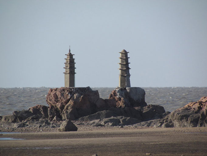 龙王庙海滨滩平浪缓,沙细水洁,夏季是良好的海水浴场,其他季节也是观光的好去处。海中礁石上有两座塔,在夕阳的照耀和海水的映衬下,景色格外优美,被称为“双塔夕照”。海滩的南面有睡佛岭,北面有白砂山,形成了独特的景观。