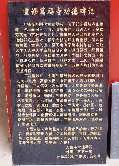 万福寺系明朝古刹复兴,位于湖南省祁东县城鼎山南麓。占地面积三十余亩。寺院清净庄严,环境优雅,交通便捷,已批准为湖南省重点寺院。 祁东洪桥镇万福寺