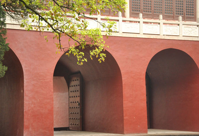 南岳庙第一进大门叫棂星门。它由棂星而得名。棂星古称天田星,“主得士之庆”,故以此名门。汉高祖刘邦命祀棂星,凡祭告天地必先祭祀棂星。棂星主人才辈出,国兴家旺。棂星门始建于宋仁宗天圣六年,1932年改建成四柱三楼式花岗石牌坊,牌坊上主“岳庙”二字,为邑人康和声书。其下白色大理石横额一方曰“棂星门”,原为曹伯开书,文革中被毁。1983年重刻,系湖南省书协主席女书法家周昭怡书。拱门石柱上阴刻楹联:“棂坏卍字,槛绕回文,仰台阁辉煌,是谓仙宸帝阙;星敛贪狼,风仪和凤,喜山河奠定,同游化日光天。”坊额两侧镌有浮龙彩凤及传说典故,坊顶较为奇特,全为石制,方中有圆,最上层倒轩一石印,它象征南岳圣帝的玺,寓意南岳庙至高至上的地位。牌坊前门西侧蹲着两只高大古朴的石狮,口含石珠,姿态慈善祥和,似乎在喜迎四海嘉宾。南端坊额上刻着“天下南岳”四个大字,笔势遒劲刚健,为宋徽宗赵佶手书。棂星门两侧便门和西便门,是进入东八观和西八寺的两道侧门,上面的泥塑古朴大方:“祝融峰之高”、“方广寺之深”、“藏经殿之秀”、“水帘洞之奇”四绝风光彩塑以及八仙、和合、福、禄、寿等彩塑,无不栩栩如生。东便门楹柱上有联曰:“八卦象离,中正乃成天下化;五行属火,文明大启楚邦才。”横额是“东来紫气”。西便门横额是:“西霭慈云”。过碑亭即为奎星阁。阁西有鼓亭,阁东有钟亭,钟亭内原有铜钟一口,为元泰定元年(1324年)潭州人易仲富捐铸,计重9000斤。上铸钟铭:“阴阳炭、天地炉。元橐签,神范模。铸成大器镇仙都,悬吊法音沏霄衢,绵亿万年福寰区。”相传其钟为镇洪之用,发声若雷,远传数十里;蛟在闻之则不敢兴风作浪,敛迹而去。奎星阁台基上架构一座戏台,原为娱神而建。戏台南面柱联是:“亭有盘龙,何不在天飞霹电;岳常集凤,都来此地听箫韶。”后台有板梯登上三楼阁顶,阁内原有一尊右手执笔,左手捧斗,形态森然的奎星塑像。“奎”系星名,是二十八宿之一。为西方白虎七宿之首。“屈曲相钩,似文字之画”。故《考经》说:“奎主文章”。后人进而把奎星演化为文官之首,主管文人学士成败命运,塑其像,以示崇文之意。院落正中为御碑亭,亭四周松、柏、丹桂、古樟、香楠,郁郁葱葱,使庭院显得十分幽深。碑亭为康熙四十六年(1707年)立置康熙帝所撰《重修南岳庙》碑而建。亭为八角重檐攒尖顶,红柱碧瓦,八角飞檐,雀替斗拱,雕刻精细,脊兽齐备,玲珑夺目。亭周为四面红墙,四方各开一拱门,亭内置御碑。岳庙记御碑及碑座于“文革”中曾被砸毁,八十年代修复。亭坊竖额书“御碑亭”,为长沙书法家李立篆书。亭周额枋上有篆书“寿”字200个,体形无雷同,寓意南岳为“寿岳”。
