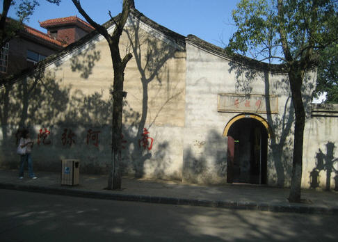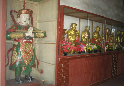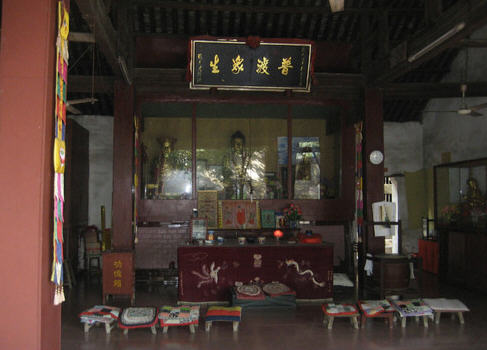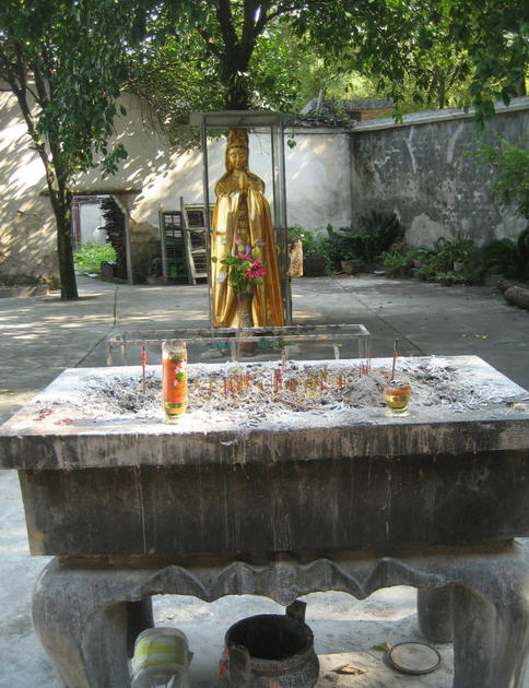 庙叫“佛祖庵”,兀立河岸,白墙黑瓦,历经风雨,门楣墙壁斑驳不知时日,墙上书写“南无阿弥陀佛”字样。山门洞开,并无人看守,院内静谧,不见游人信众,只偌大香炉残香袅袅。殿不大,正中供奉观音,上悬挂“普度众生”匾额。院中有金身观音立像,与殿内坐像合掌相望。庑下右侧悬挂一铁钟,上有铭文,仔细看是捐善款者名字。钟后有鼓,立于架上。晨钟暮鼓然也。殿左靠墙一排彩绘观音菩萨像。殿内有坐墩数只,应为信众聚会用,旁有功德箱。在院内靠河栏杆处,眺望潇水河及市区,蓝天白云,楼宇耸立,远山连绵含黛,倒映清澈河中。河水浩淼,鸥鸟翔集,真美景汇聚地也。
