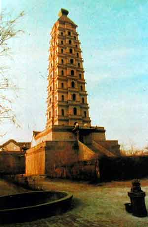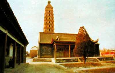 海宝塔寺,位於宁夏银川市北郊,俗称「北塔」。寺院坐西朝东,占地面积一万八千平方米,主要建筑有山门、钟鼓楼、天王殿、大雄宝殿、海宝塔、玉佛殿和卧佛殿。这些建筑排列在一条东西走向的中轴线上。