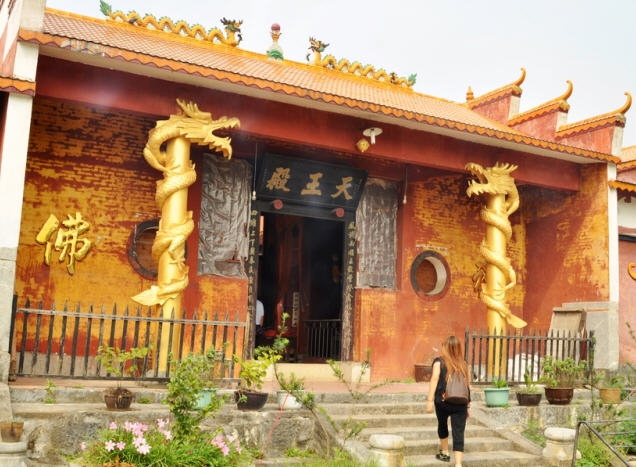 玉峰寺正殿两旁高挂“佛”、“禅”二字,一股真善美的浩然正气在寺庙升腾,善男信女手持长香的顶礼膜拜,祈福祈太平,期盼幸福美满的生活。
