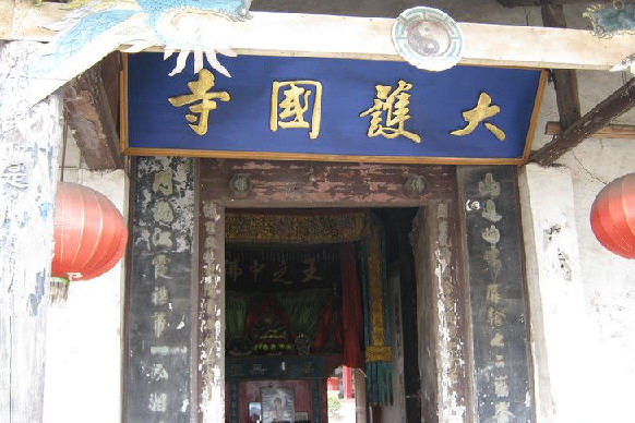 大护国寺,明桂王建,香田甚富。兵乱寺毁,田被侵占。顺治十六年,奉文清理王庄,侵田尽复,以半入寺,乃鸠工重建。殿宇壮丽,古树交荫,清梵时闻。官道之旁,信为佳