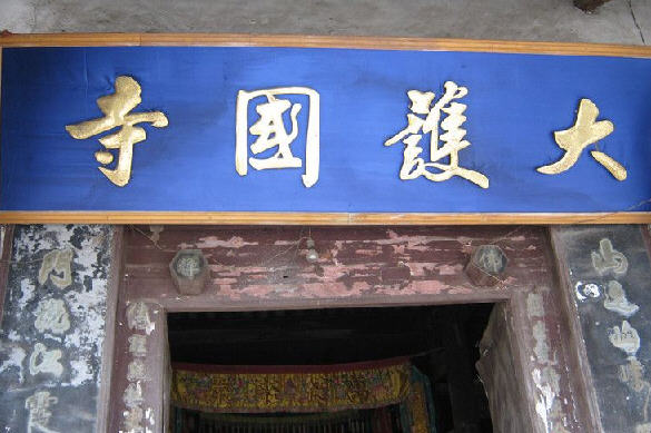 现在只保存了小小的一间山门了。门上“大护国寺”四字的匾牌是新换的,。山门也就是大寺的正门正寺。
