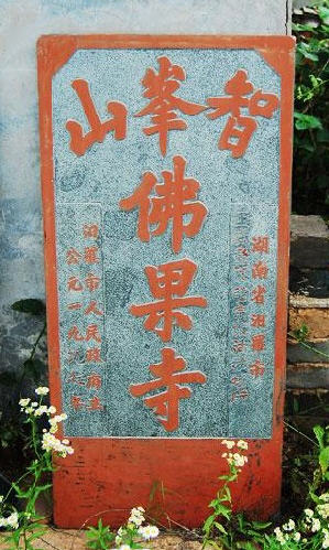 智峰山出自幕阜神峰,其脉龙行起伏,谓之狮形贯西北而来,挺立于汨江西岸,雄踞于长乐垣,肇旬南梁依山置郡。管辖六城隋文帝建庙于峰名佛果寺。沿麓置县,唐承隋制,宋元明清,增筑群庙(四十八庵)于山腰,诚乃黄国北极,紫气东来,巍巍乎支分脉衍,东到冯向蓝三洞,往西而流是为长乐、天井、红花之祖也。几经沧桑之变,改革开放以来,佛果得以弘扬,一九八三年被汨罗市人民政府,立为市重点文物保护单位,一九八五年被市民宗部门批准为佛教活动场所,一九九六年由明能大师为首简陋重修上殿,一九九八年以释来玉为首新建大雄宝殿。