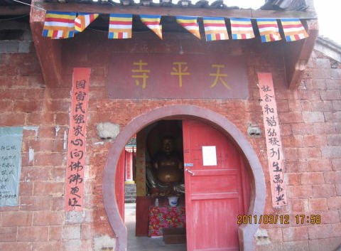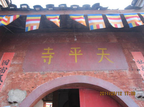 天平寺史铭:天平寺原名宝龙古寺,明嘉靖年间佛教传入武溪之地,清乾隆年间有高僧名来贵法师者云游湘黔,一日等望江坳见古木参天,峒河蜿蜒西来,东有紫气来聚,前有十万人家,后有崇山峻岭,谓此地乃乾城福地,祈平安求财之所,于是结庐弘法,众生所求多得遂意。香客云集,蔚为壮观,终成名山古寺..........1984年,吉首市宗教部门,批准天平寺为对外开放佛教场所。