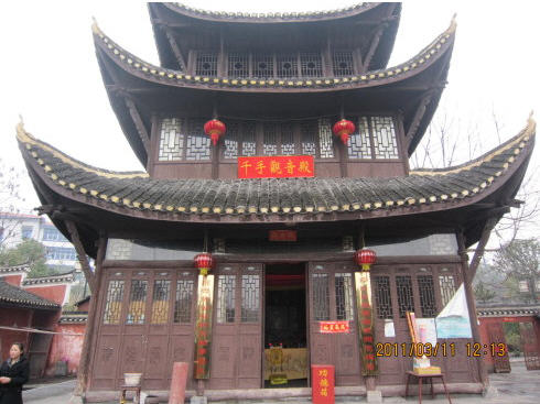 吉首乾州观音阁始建于明德元年(1506年),清道光十六年(1836年)重修。主殿属纯木结构,三层四檐,广深各10米,高约20米,属于吉首市文物保护单位。