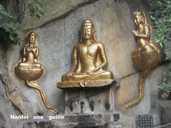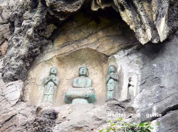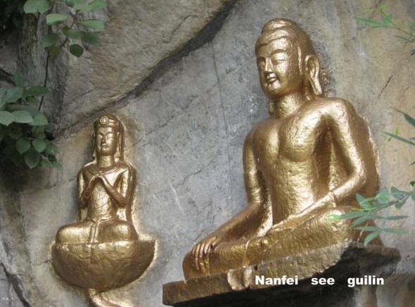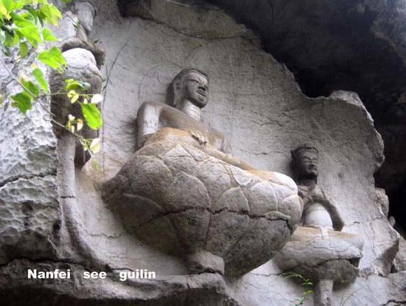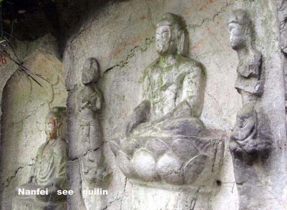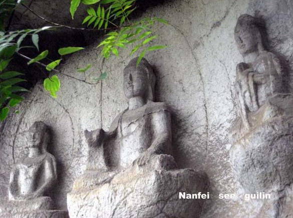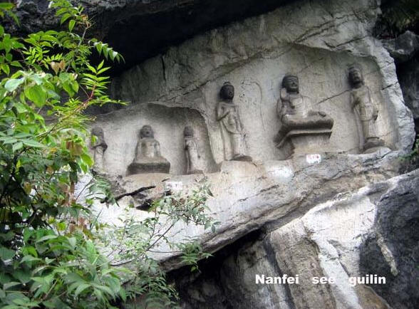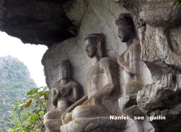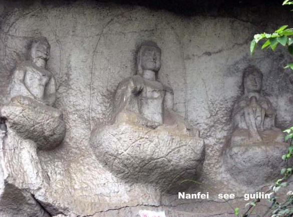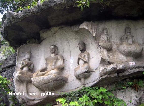 广西壮族自治区重点文物保护单位。在市区西山公园内。分布于立鱼峰、观音峰、西峰、千山诸峰悬壁间。共95龛,241尊。多为一龛一尊或三尊、七尊、十尊。最大的约2米,小的仅数厘米。主要镌刻眦卢舍那、观世音。西山是桂林开发较早的风景区,早在唐代,这是便是佛教胜地。当时的西庆林寺是我国南方五大禅林之一。西山摩崖造像雕刻精美,风格独具,有浓郁南方特色。造像面部丰满,耳垂至肩,宽胸细腰,袈裟贴体,斜襟飘逸,乳、肩裸露,神态温和。相似于印度菩提迦叶大觉塔古遗大佛像及爪哇佛楼大佛像。专家认为是佛教传入中国的南线文物。这里有一些佛像缺头、断臂、少足,据《桂林风土记》记述,是唐武宗李缠(chan音缠)会昌年间在全国实行毁佛所造成的。武宗死后,宣宗又实行抑道兴佛,佛教有所发展,但作为佛教胜地,西山从此一蹶不振,再经五代十国的分裂和战乱,至宋代,已走向衰落。西山也不再为僧侣佛徒所垄断。