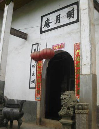明月庵坐落在长沙县金井镇观佳村石磅组,距S207线3.5公里。据“云雾庵”碑志记载和历史传说,该庵原名“石彭庵”,始建于明代后期,清乾隆八年由杨氏宗祠购置,更名“云雾庵”。1936年,大光法师巡游至此,见物生情,更名为“明月庵”。该门殿曰:“明照三千界,月朗四大洲。”该庵群山环绕,貌若半月状,坐东朝西,后山紧连兴云山,林荫蔽日,风景优美。现有佛堂、佛塔、食堂、宿舍、柴屋等,总面积700平方米。庵内有常驻法师4人,分别是释能定、释明新、释来信、释印证。在党的宗教政策落实以来,广大信众越来越多,目前已成为合法宗教场所。