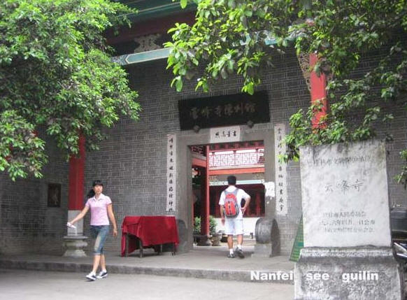 云峰寺是桂林市重点文物保护单位,位于桂林市区象鼻山西南麓。相传唐代这里曾建有温灵庙。宋嘉定七年(1214)方信孺在此建一书斋,取名“云崖轩”。明代这里又建“范方祠”,祀范成大、方信孺。清代改为寺,名“云峰寺”,后又改寺为庵,名“福利庵”。清咸丰三年(1852)太平军围攻桂林,在此设攻城指挥部。原建筑于清嘉庆三年(1798)、咸丰十(1860)和光绪十六年(1891)都曾重建或修葺过,系砖木结构的三进建筑,抗日战争中遭破坏:但未全毁。