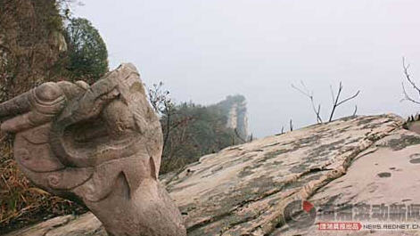 户外运动爱好者在寺外悬空的石壁上,发现镶嵌着一条坐东朝西的石龙头,为红砂岩雕刻,形神俱佳,应为祭天所用。颇为离奇的是,风雨侵蚀的寺身找不到任何文字,在半山腰的竹林从中却发现许多散落的石碑,碑上文字读不出来龙去脉,多为人的名字和捐银数量,有一块石碑上刻有“道光九年夏月”,疑为清代修建或者维修金岩寺的功德碑。