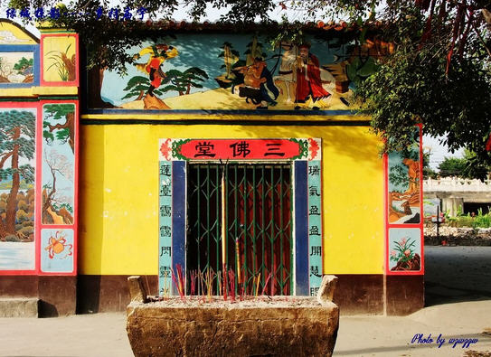 三间平房,水泥砌成的香槽,墙上绘有八仙过海、唐僧西天取经和一些纯粹抽象的涂鸦,还有一块让求子心切抱得光滑可镜的观音石。