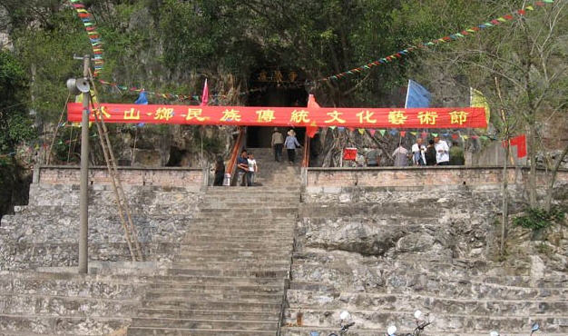 当时,木山盆地还是一片小海洋,天龙时而在水中戏水,时而在山坡上休息,疲倦了就进天龙洞中睡觉,日夜守护着卢天大仙囚禁在山下的蛇妖、鳄魔。有一天,天龙听到卢于大仙的召唤,便一气吸干了小海中的水,使海水退出,露出一片肥沃的泥土,然后飞升到卢于大仙身边。天龙飞天后,当地的群众从山上搬了下来,在肥沃的土地上垦荒种上庄稼,年年获得丰收。当地群众为了纪念卢于及天龙的功德,于每年的二月初二在卢于寺前的坡地上抢花炮、舞狮子庆祝卢于大仙降妖除害、天龙退海还田的功劳,从此便留传下二月初二抢花炮、逛庙会的民族节日。每到庙会,成千上万的群众都涌到庙前,争抢花炮,抢到花炮的意味着该家今年万事大吉、升官发财。为了纪念天龙的功德,当地人便把天龙住过的山洞叫天龙洞。