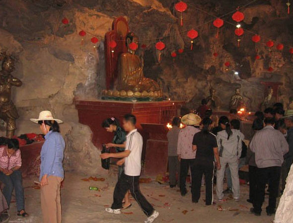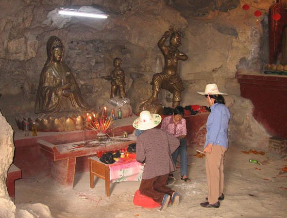 卢于天龙洞位于上林县的东北部,木山乡木山卢于寺西500米处的岜昌山的半山腰,此洞目前发现分三层,现在开发的仅限第二层,二层全长1450米,宽2100米,洞内分5个厅堂、9个洞府。洞内各处皆环环相通,洞中奇形怪状的钟乳石,林林总总,各式各样:有的如群英荟萃,有的如仙女下凡,叫人如堕烟海,如入梦境。如群英堂中的雄鹰抓兔子,神龟渡河,群猴戏闹花果山。又如:双龙堂中的双龙出洞,三蛇戏珠,金鸡晒翅。还有天河堂中的三藏拜佛祖,情人隔河遥相望,仙女拉二胡。真可谓处处皆美景,无洞不仙居。有诗赞道:“忽传岭南有仙山,洞奇景鲜胜从前,九洞神工添秀色,五堂鬼斧蔚奇观。仙人卢于乘龙去,此山空剩天龙府,拜罢卢仙进龙洞,洞中美景胜人间。”