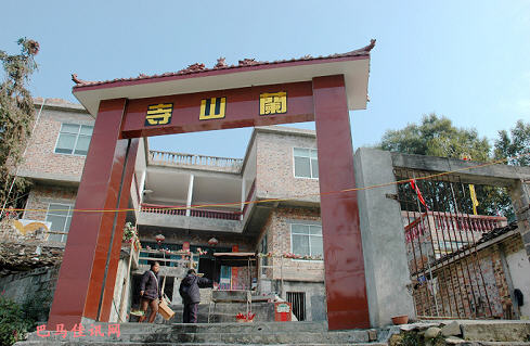 1958年由于当时的政治运动,兰山寺一度被毁,法师和尚外逃,80年代后由群众自发集资重建。兰山寺主殿面积250平方米,附属建筑290平方米, 兰山寺殿内供佛始释迦牟尼等佛像数尊。兰山寺自有水田7亩,茶林13亩,管理员和信徒共80多人。