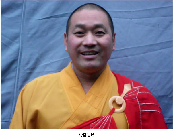 常悟法师,1973年8月出生于安徽省定远县的一个农民家庭。和当地许多同龄孩子一样,法师在1979~1991年期间相继完成了小学、初中、高中教育,并于1992年顺利地进入中国人民解放军武警部队,成为一名正式的武警人员。1995年,服役期满的常悟法师被安排到安徽省定远县粮食局工作。工作期间,法师一直勤勤恳恳、兢兢业业,取得了优异的成绩。在后来偶然的机会,法师接触到了佛法,并产生了浓厚的兴趣,从此专心投入于佛学的研究。1999年,在佛法的熏陶下,法师终于大彻大悟,于是在安徽省九华山剃度出家。披剃之后,常悟法师自2003年起先后在湖南省安乡县观音寺担任知客、维那等职。2005年,因缘具足,法师在湖北省章华寺求受三坛大戒,成为一名正式的比丘,并于同年离开湖南省安乡县观音寺。2006年,佛法与修为显著的常悟法师升任湖北省公安县古升寺住持,担起主持该院工作的重任。在法师的管理之下,古升寺逐渐走上正轨。法师又于2007年接手湖南省安乡县普光寺,担任该寺住持至今。