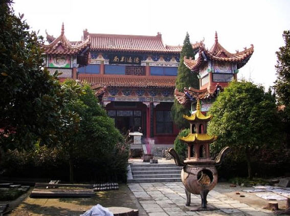彭山寺,位于湖南澧州外八景之一的“彭峰晓月”景区内的彭山寺山顶,和山下蜿蜒的澧水交互映辉自成一景,其前身为彭山思王祠,始建于唐,距今有800多年历史,明户部尚书李如圭曾衣锦还乡,上山拜谒,感受这秦砖汉瓦之风,便步那唐诗宋词之韵,诗兴大发,作了一首《颂彭山思王》: 雄才宗室寄干城,刺史分符万里行。 德在民心崇祀远,功施社稷荷封荣。 半山落日鸦声乱,古庙高松鹤影清。 瞻仰英风频感慨,断碑开藓读遗文。 龙脉之地时常氤氲紫岚薄雾,灵气逼人。尽千年来前往朝拜瞻礼之人络绎不绝。相传时任澧州刺史的唐王李元则之妻闲暇之余在寺内缝制童鞋送给前来敬香的人。说来甚怪,凡得男鞋者均生男孩,得女鞋者均生女孩,人皆以为奇。她们乘鹤仙去之后,人们便捐资在思王主殿之后修建了“娘娘殿”,分东西二宫,奉养僧尼,专制童鞋,供香客摸取,亦同样灵验。