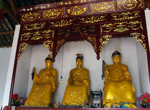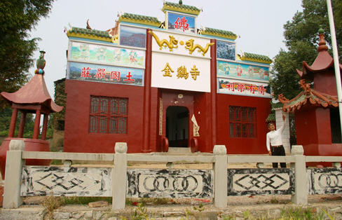 今秋,金鸡寺信众又捐资3万余元,组织画、漆、木、瓦艺工,全面维修。至此,法像塑金、殿宇油漆、牌楼彩绘和园林修饰等工程基本告峻,面貌焕然一新。维修后的山门牌楼,高约10米,宽12.3米,立体凸现五亭三层和左右珠红“三双”(双柱、双门、双窗)。在牌楼顶端的大“佛”字下,绘有“金龙戏珠”和易继凡先生楷书的“金鸡寺”三个金字。二层西亭绘有秦(叔宝)、尉(迟恭)等四位武将,东亭绘有魏(征)、徐(茂公)等四位文相。三层东,西亭的“庄严国土”、“利乐有情”八个大字,是弘扬爱国主义,促进社会和谐,劝人行善敬孝,诚信做人的佛门箴言。双目仰视山门牌楼,呈现一幅金光灿灿,鲜艳耀目的佛道仙境立体壁画,也是广大居士、信众经历13个寒暑艰苦努力的标志。他《她》们正在以拜佛祈福的虔诚行动,迎接即将举行的“湖南省临澧县合口镇金鸡寺佛像开光暨开放典礼法会。”法会已由韩英明、戈祖金、滕纯森、张辉兰、张年舫、周大东、于忠栋、易继凡、唐汇金等组成领导班子,备法会具体事宜。结语: