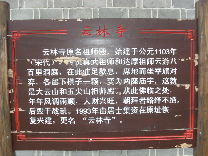 云林寺又名祖师殿,元、明几朝修缮不断,至乾隆五十五年、光绪十七年、民国七年进行过大的修缮,此寺占地面积达1200平方米,香火旺盛。后毁于解放战争,建公园后已修复了大雄宝殿。