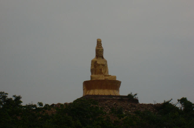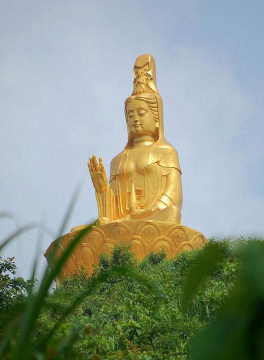 山顶,有一座巨大的、金光耀眼的观音坐像。相信就是她的子民建造的,因为,在五尖山,似乎任意角度都能看到这座闪着金光的观音。