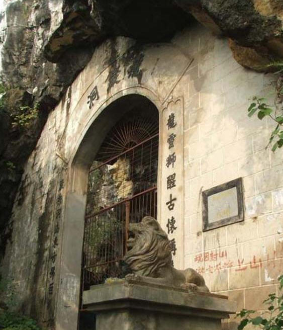 龙岩洞,位于贵港市城区东25公里的大圩镇南郊附近的龙岩山西面半山腰上,人们沿“之”字形石级登山,踏上第一百一十一级便到洞府。此洞府门高约4米,门额上镌刻着明万历年间李焘的题字“龙岩洞”。
