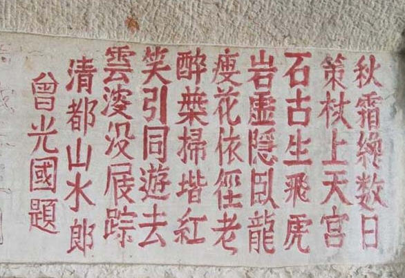 从南岩向东沿一条狭窄的暗径走二十余步,绕过安禅的小洞府,又到一洞曰东岩。岩中供奉观音菩萨,故又称观音岩。东岩大门为石拱门,上刻“天然胜迹”四字。这里的“天然胜迹”,简直是中国一绝。洞内历经岁月洗礼,自然刻绘了幅幅山水锦屏,尊尊花鸟异雕。即使方家巧匠也望而兴叹。看洞顶石壁上横生石梅两株,枝干盘屈,花蕊扶疏,形态逼真。石壁上的石笋如同刚出水的莲藕,石鹤在歌舞升平,形态逼真,堪称奇绝。静坐片时,回归大自然之感,油然而生。因此,历代名人学士驻足于此,往往诗兴大发,题诗甚多。如清林鹤龄秋日游龙岩诗曰:“古寺云归晚,天开第一重;山高峰落雁,岩老石成龙。远树接晴翠,黄花带雨浓;上方今日到,独扣夕阳钟”。清陈廷浩七律诗:“怀邑唯尊第一山,登归真觉俗情删。层峦曲折钟声迥,宝殿森罗月影弯。堂美鱼轮新眼界,佛装色相壮禅关。洞天福地炎威少,约伴携筇醒醉颜。”清康熙贡生曾光国游龙岩诗:“秋霜才数日,策杖上仙宫;石古生飞虎,岩虚隐卧龙。瘦花依径老,醉叶归阶红;笑引同游去,云深没履踪。”广东梁上柱步韵和诗曰:“丙戌春三月,携朋馆此宫;风生疑啸虎,云卷若飞龙。坐石谈绎夜,焚膏继日红;丹成九转后,无迹亦无踪。”