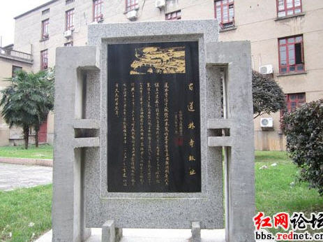 道林寺,始建于六朝,隋唐时为佛教律宗寺院,宋代改为禅宗。明正德四年(1509)被毁。道林寺遗址在今岳麓书院以东,屈子祠一带。清代山长罗典在一片水田中兴建屈子祠堂,在基址出土了道林寺的古砖及相关的建筑遗址。但这样介绍,可能读者仍不清楚道林寺的具体位置,因为屈子祠也已早毁。用现存建筑作参照,那块地面即今湖南大学九舍、五舍所在的地面。九舍为著名建筑学家柳世英的作品,是湖大民国建筑群中的经典,两层砖木结构,朴素简古。我刚进湖大读书的时候,住在那里,常在梦中与僧人同榻而眠,同室的学友也有做过这种梦的。九舍的前面是五舍,专住女生。我由是怀疑那些年轻貌美、血气方刚的小姐与我异床同梦。一年的雪天,两栋宿舍间的梅花盛开,大风在素素的花朵上空吹箫,我趴在窗前看一群女生在花树下照相,想象中的寺庙如同雪中蜃楼,唐宋明清的不同场景好像全印在一块画布上,那真是一种令人痴迷的风景,有一种亲近神灵的快乐。