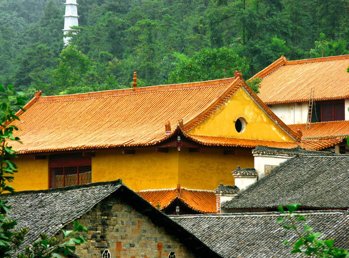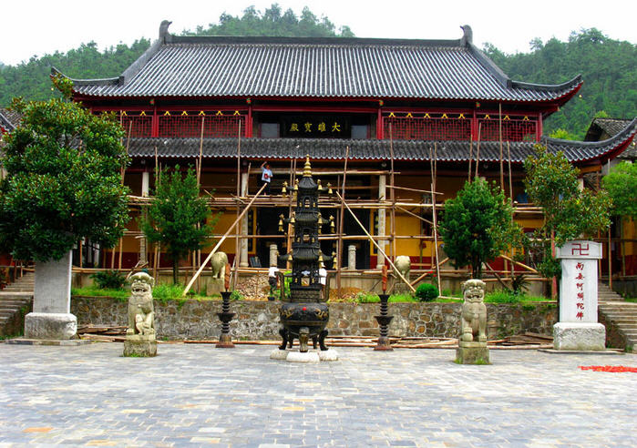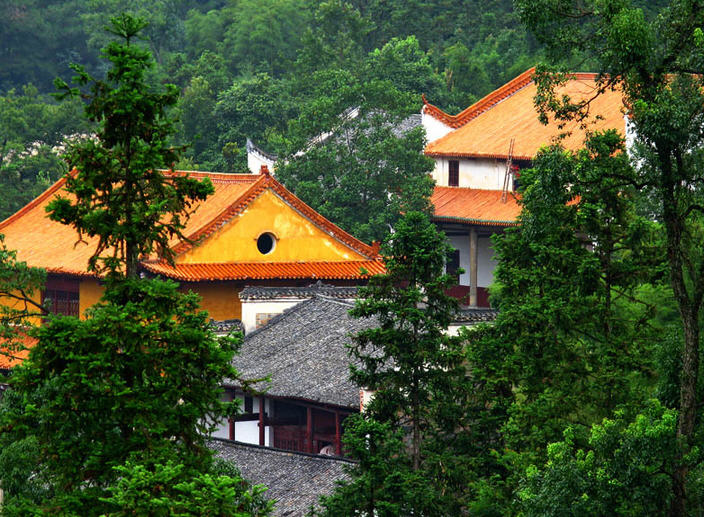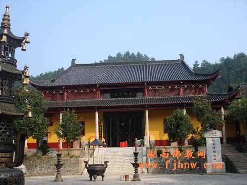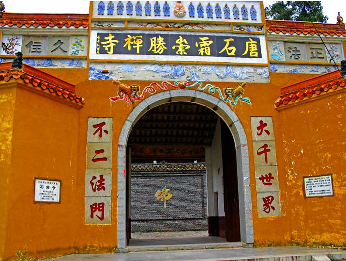 石霜寺位于湖南省浏阳市金刚乡石庄村霜华山上,距市区70华里。前有浏翠峰,晴岚雨雾,春华秋月,气象万千;后有凤翔峰,状若凤凰展翅。狮子峰居其左,象王峰居其右,有如狮象拱卫门庭。寺宇坐北朝南,依山坡分台阶而建,面积三千六百平方米,为我国著名禅宗从林,具有一千多的历史。石霜寺创建于唐僖宗(874-888年)时期沙门庆诸之手。早在唐朝,它就名登朝廷,声动公卿。以后如楚圆、方会、慧南等名僧辈出,成为临济宗杨歧派和黄龙派的共同祖庭,在中国和日本禅宗史上,都有着极其重要的地位。庆诸禅师,《五灯会元》有传,俗姓陈,庐陵新淦(今江西省清江县)人,拜绍銮为师出家学佛。初参访沩为灵佑,在密印寺当米头。以后又到道吾山参访道吾宗智获悟。后来他被洞山良价所赏识,因而成名,当了寺院住持,开堂说法。庆诸居石霜寺三十年,僧众追随者达一千多人,其中近八百人一心参禅,长坐不卧,屹若株杌,被人称作“枯木禅”,名声远扬,得到当时帝王推崇。唐僖宗派人赐他紫衣,他坚辞不受;后为之修建寺院,由裴休监造,赐名“崇胜禅林”。僖宗的第三个儿子也在这里出家,法号普闻,以后才去大乾山开法,称作“龙湖禅师”、成为一代名僧。庆诸卒于僖宗光启四年,谥号普会大师,建塔于寺的西北。唐朝的石霜寺建筑宏伟,佛像庄严。寺修成后,朝廷赐给香火田,以充寺院经费。当时的石霜景色优美,古迹甚多。“内八景”有千僧锅、万人床、象牙朝笏、祖师袈裟、禅杖、包公砚池、枯木堂、自鸣钟。“外八景”有虎扒泉、盐醋井、飞来塔、仙女晒鞋、山人下棋、仙人推磨、打鼓岭、蛤蟆滴水。此外,山寺附近还有不少神话传说,颇为有趣。隔河相会、仙人椅、上马石、木鱼石、关公桥、棋盘石、引路松、太子桥等等,皆据自然景物,随意立名,引人入胜。