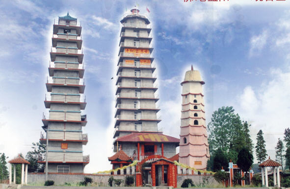 如《善心塔》、《明心塔》、《弥勒佛塔》、南天门、圣公、圣母、凉亭,《仙佛桥》等等。