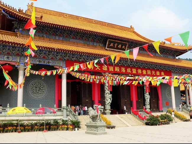 四恩寺于2001年农历八月初六开工建设,是岭南现代第一寺,占地65.7亩,总建筑面积18000平方米,整个古建筑群仿明清风格,气势磅礴,符合阴阳宇宙观和对称、稳重的审美观。