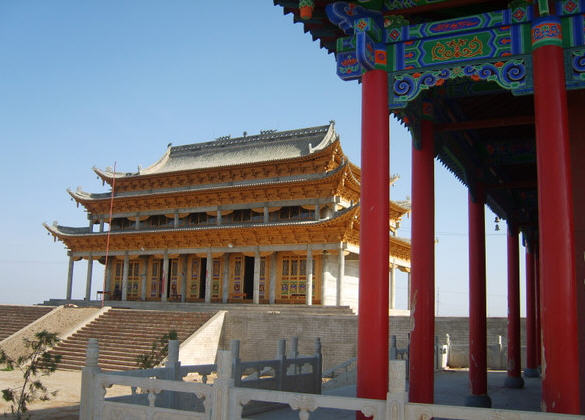 弘佛寺位于西部大开发区、红寺堡城南,地处黄土高原东麓,与毛乌素沙漠交汇的古塬之上。寺院之西紧靠古老的清水河中段,俗称“洪沟”,有“古塬雄浑、金沙烁浪、洪沟流水、鸣声鸣咽”的自然景观。地貌复杂、沟壑纵横,源头起伏,碧川连绵。