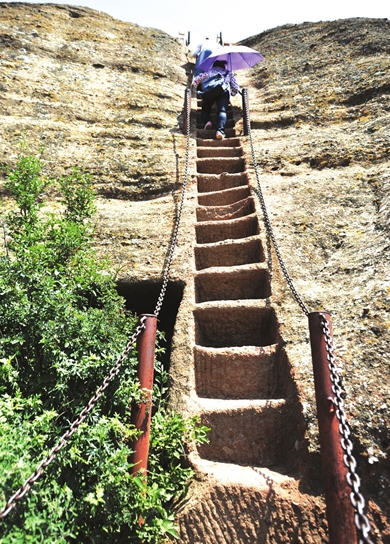 接近近垂垂直直的的石石梯梯通通向向山山顶顶。。