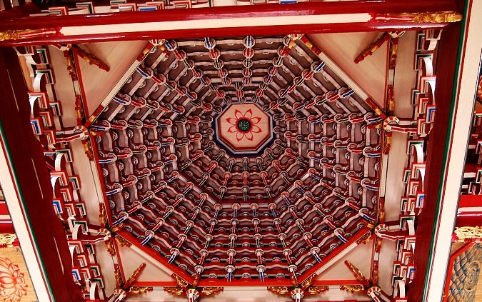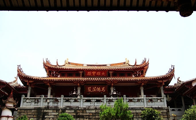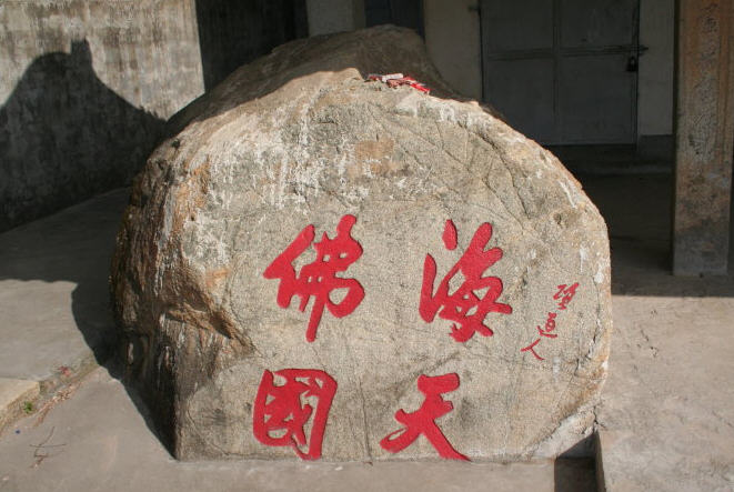 建造大雄宝殿,需要巨石琢打成石柱石珠,最后选中龙华金沙石料场,但大石料高居山顶,运下来很难。神奇的是,五月九日签订合同,十天之后的晚上,大风大雨,一块体积30立方米的巨石自动滚下来,刚好落在采石工匠劳作的石窖里。大雄宝殿全部的石柱、石珠,都是用这块巨石琢打、雕成。真所谓“一石撑大殿,万钧托佛力!”