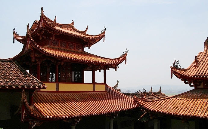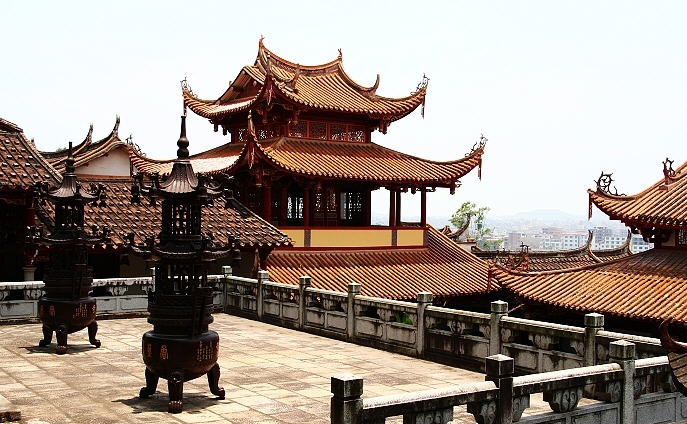 全寺坐东北,面西南。自山门进,依山势次第升高,气势磅礴,殿楼嵯峨,雄伟壮观,飞檐重阁,金碧辉煌。鎏金烫彩的宝殿,雕梁画栋的长廊,典雅精致的楼台,宽敞明净的寮舍,焕然一新的佛像及护法神塑像,使人有“天上楼台山上寺,云中钟鼓月中僧”之感。