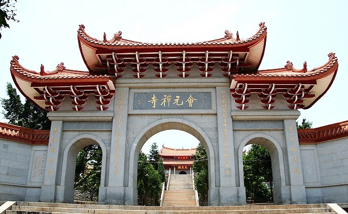 山门花岗石横匾上“会元禅寺”四字,系中国书法家协会名誉主席启功题写;山门正面楹联“慧日破诸暗,慈眼视众生”,系中国佛教协会会长赵朴初撰写。寺院附近尚有塔斗山、万寿塔、会心书院等名胜古迹,与会元寺相得益彰。