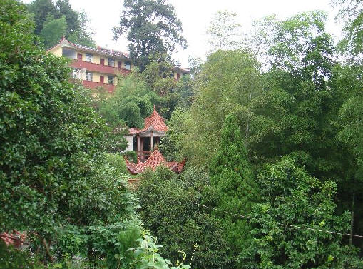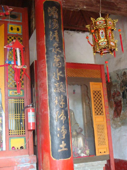 金莲寺是一得天独厚的天然参悟佛学禅理的理想场所。从省道旁的山脚下拾阶而上,石阶两旁树木丛生,苍松翠竹,郁郁葱葱,很容易让人联想起“曲径通幽处,禅房花木深。”寺庙本身坐落于笔山谷口的灞涌岩上,周围竹树环绕,每有清风徐来,竹树林里便爆发出如鸣佩环般的声响,令人满心欢愉。寺门前的几株古树,外形虽然已经略显老态,但是依然枝叶繁茂,即便是夏日正午,烈日炎炎,这儿也是浓阴蔽日,凉风习习,尽显出一派清幽寂静的气氛。