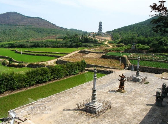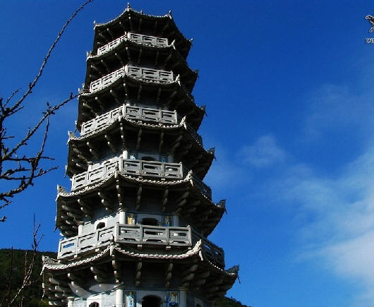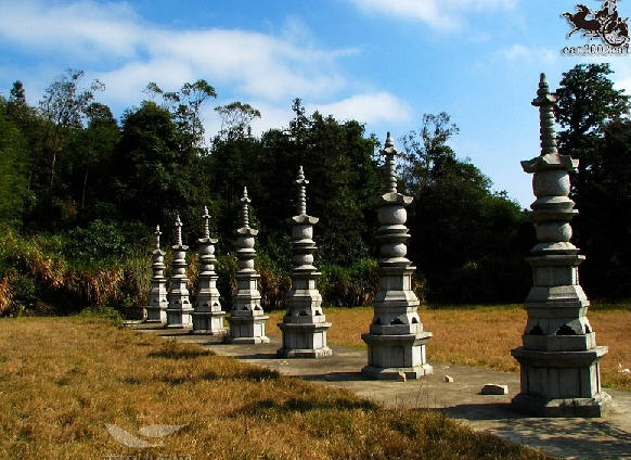 在寺右前宽广的石埕上,建有全石构的高33米的尖顶翘角的七层“定光舍利塔”。塔室空心,有石梯通往各层;层层供有菩萨,镌有罗汉像和法语、经文;周围又有护栏;站在七层护栏上眺望,四周景致尽收眼底。它宛若巨人立地顶天,劳动人民称八闽之最。