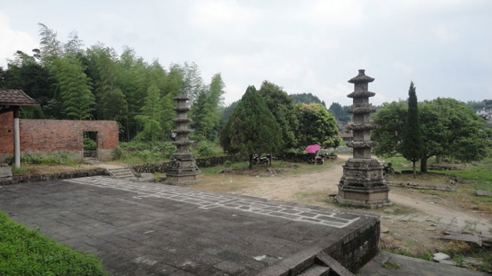 九座寺系智广上人始建于咸通六年(865年),位于凤山村风光秀丽的九座山东麓,坐西朝东。