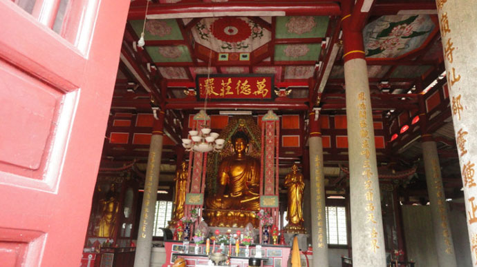 该寺有:山门、天王殿、罗汉堂、大雄宝殿、大士堂、藏经阁、钟楼、鼓楼、祖堂、法堂以及其他丛林所罕有的厅与浴院等二十多座建筑群。九座寺屡建屡毁,初毁于宋嘉定八年(1255年),再毁于宝祐三年(1255年)。法本法师率徒募化,重修寺宇,至开庆元年(1259年)恢复旧观,常住僧人达二百余众。以后,又时有兴废,至明嘉靖壬午年(1522年)被倭寇焚毁,僧人逃散。万历年间意空和尚恢复大殿。后又废。清康熙已亥年(1695年)密祚法师及其徒惠亮法师历尽艰幸,重兴寺宇,鼎盛期间,寺僧多达五百余人。