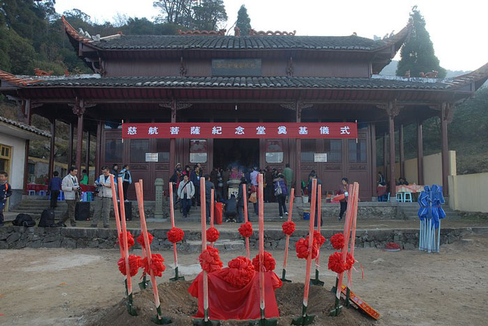寺院海拔高度1600多米,后倚峨嵋峰主峰,背靠天然太师椅山体,安座于太师椅中稍隆而起宛如弥勒肚的山坡上,前瞻双重笔架山,面临天然放生池,气势恢宏,前景开阔。攀上主峰,可观泰宁全城及大金湖。寺郊平坦,周边景观独特,可观云中日出,尚有水坝、深塘、古树、野花等,雨后的空中经常示现佛光与彩虹,春夏秋冬皆有胜景。今有简易公路直通,水、电、通讯也已具备。该寺曾名峨嵋庵,始建于宋代,由于水灵山圣,历代不乏高僧出世,且为肉身舍利成就者慈航菩萨剃度出家之道场,名闻八闽及海峡两岸。